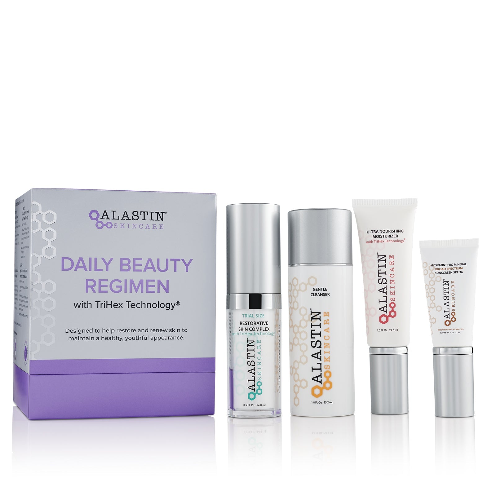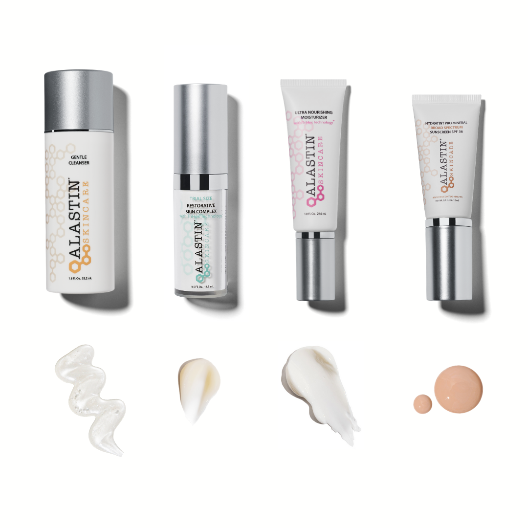This anti-aging regimen set contains 4 of Alastin's best-selling products, designed to support the skin's natural ability to produce new, healthy elastin and collagen