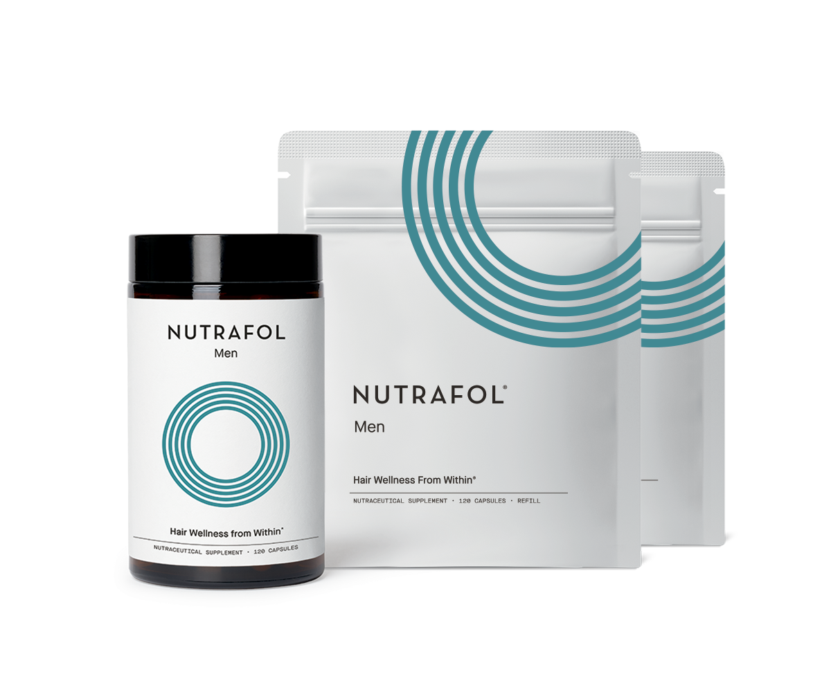 1 Bottle Nutrafol for Men (120 capsules) – 2 Men's Refill Pouches (120 capsules ea)